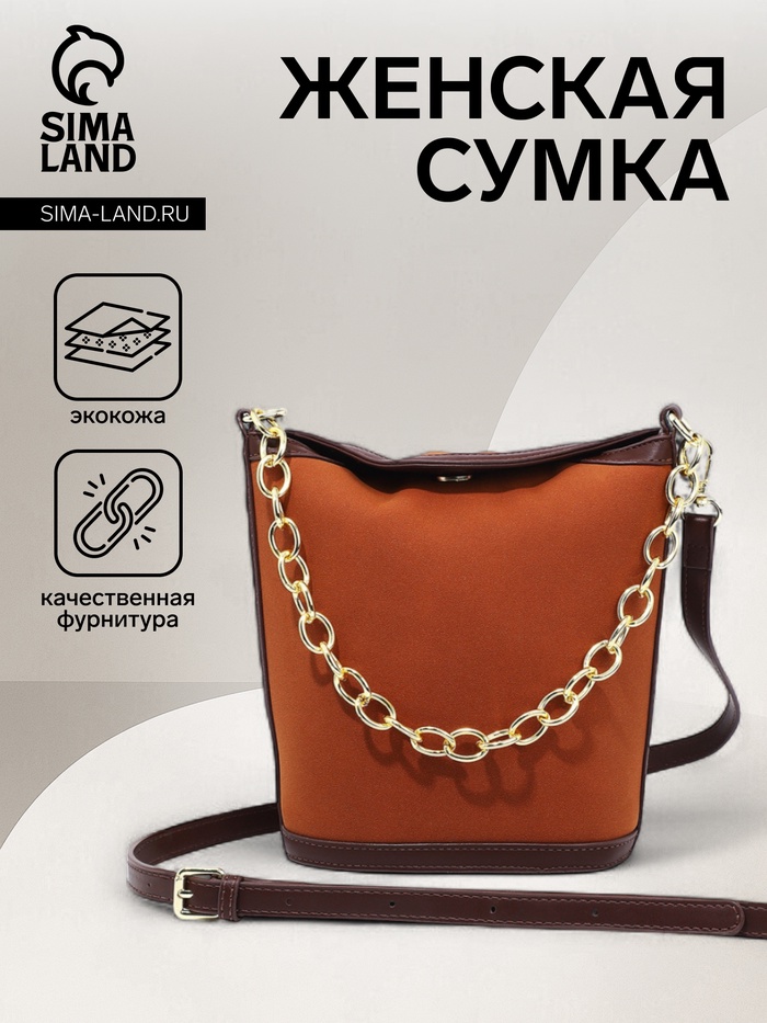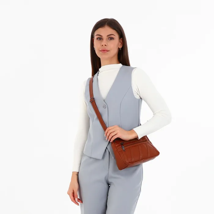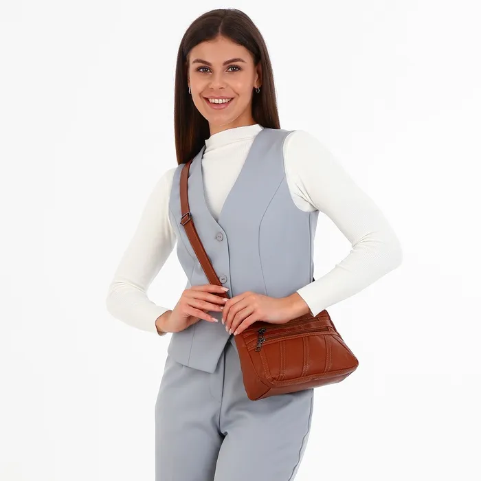 Сумка женская кросс-боди на молнии, 24×8×18 см, коричневая — Характеристики