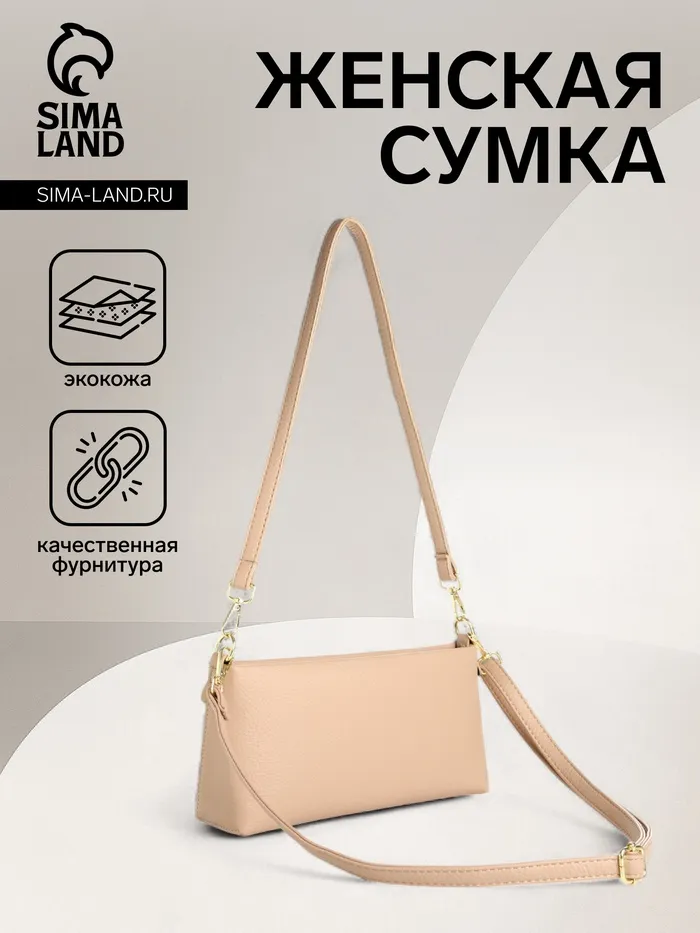 Сумка женская кросс-боди на молнии, 25.5×6.5×12.5 см, бежевая — Характеристики
