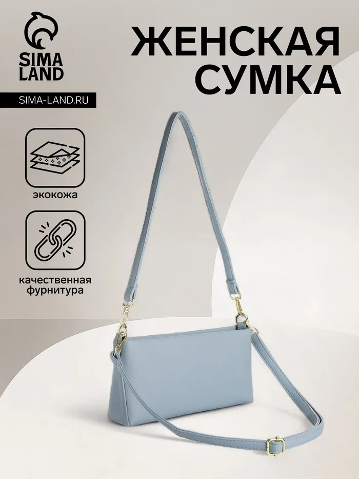 Сумка женская кросс-боди на молнии, 25.5×6.5×12.5 см, голубая — Характеристики