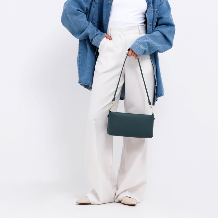 Сумка женская кросс-боди на молнии, 25.5×6.5×12.5 см, зелёная — Характеристики