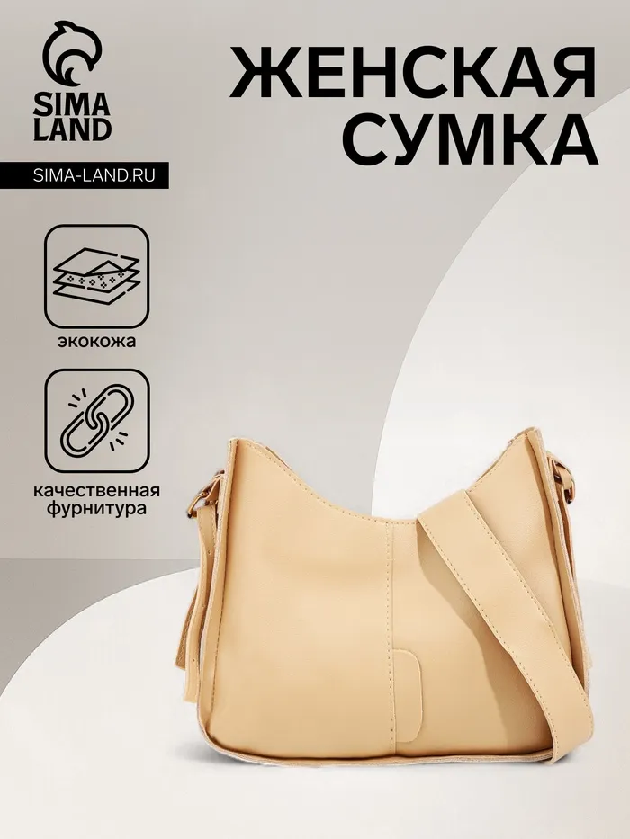 Сумка женская кросс-боди на молнии, 25.5×8×20 см, бежевая — Характеристики