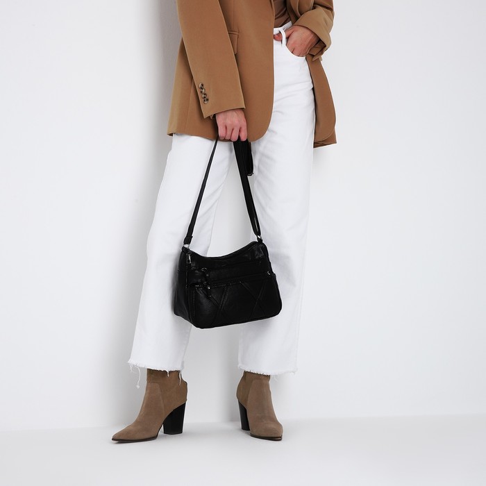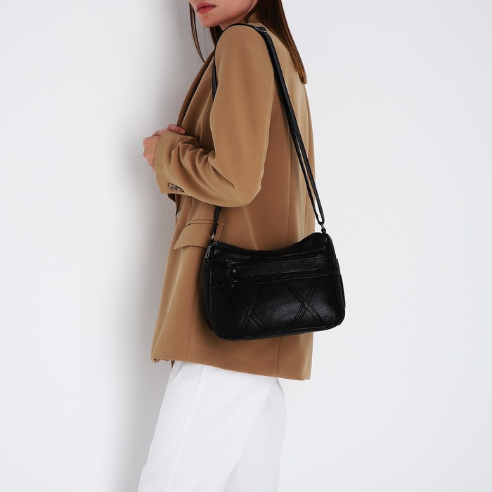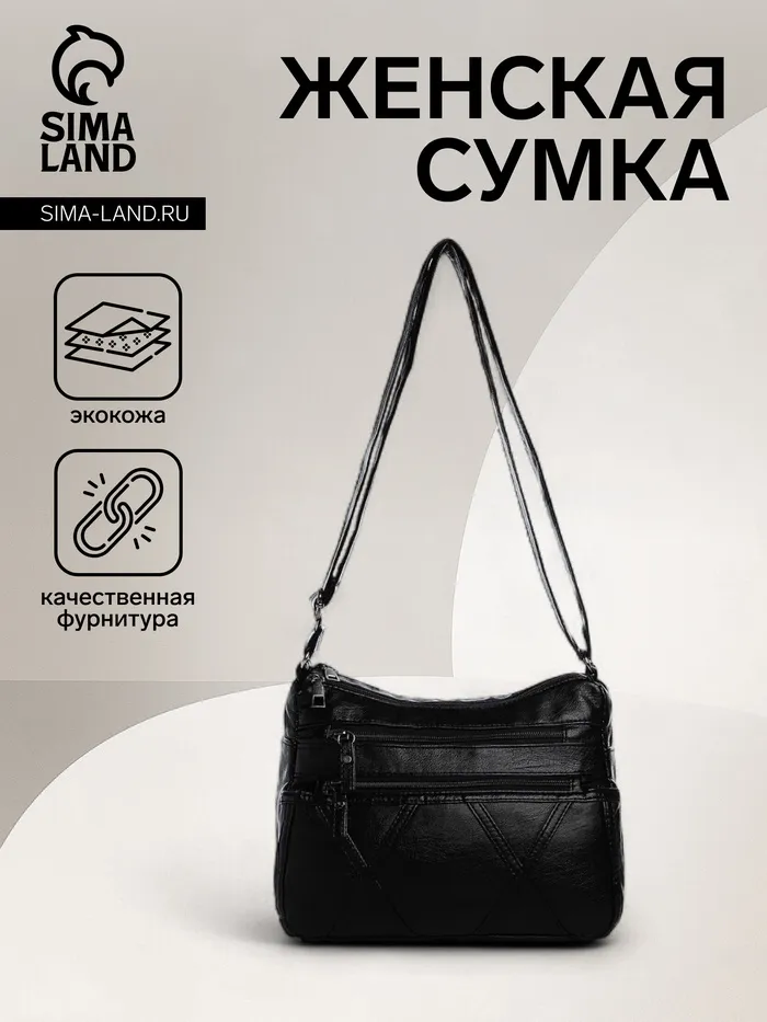 Сумка женская кросс-боди на молнии, 25×11×19 см, чёрная — Характеристики