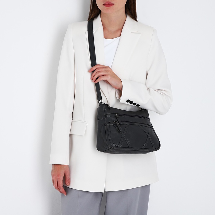 Сумка женская кросс-боди на молнии, 25×11×19 см, тёмно-серая — Характеристики