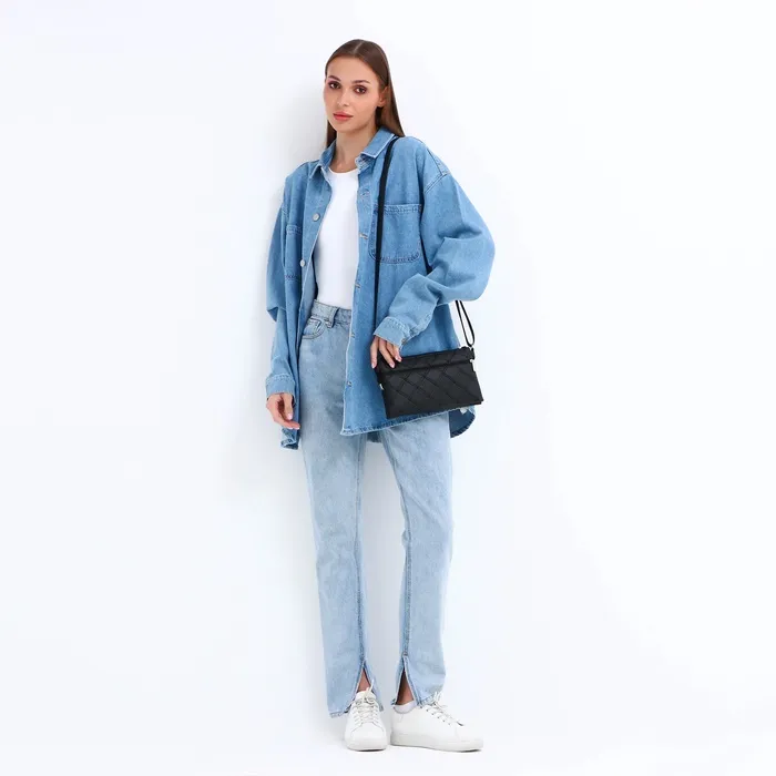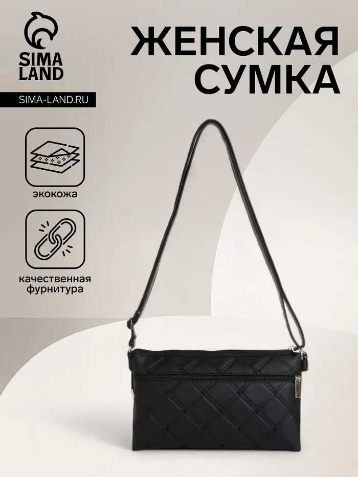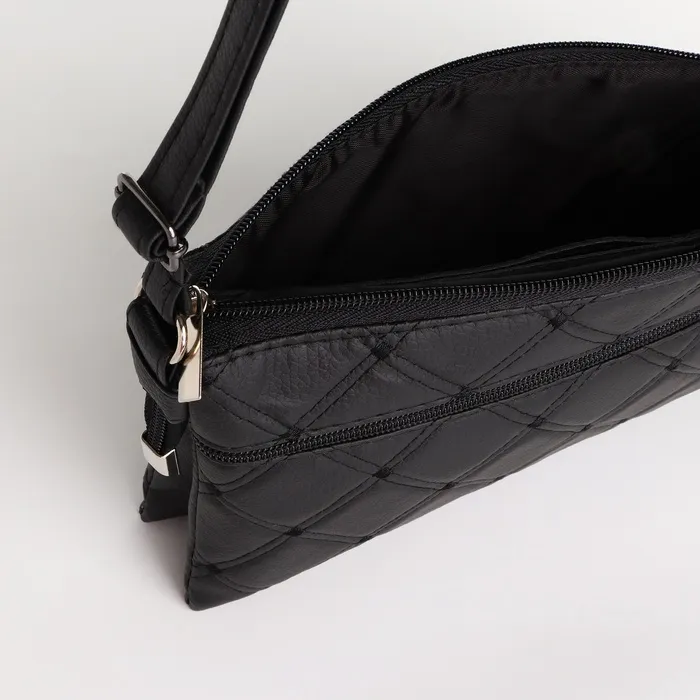 Сумка женская кросс-боди на молнии, 25×4×15 см, со стёжкой, чёрная — Характеристики