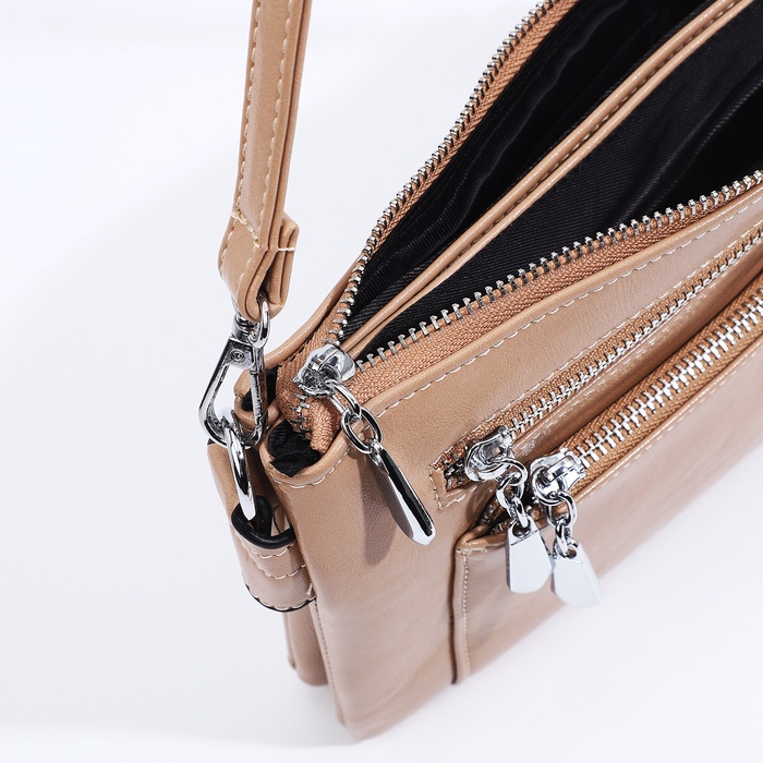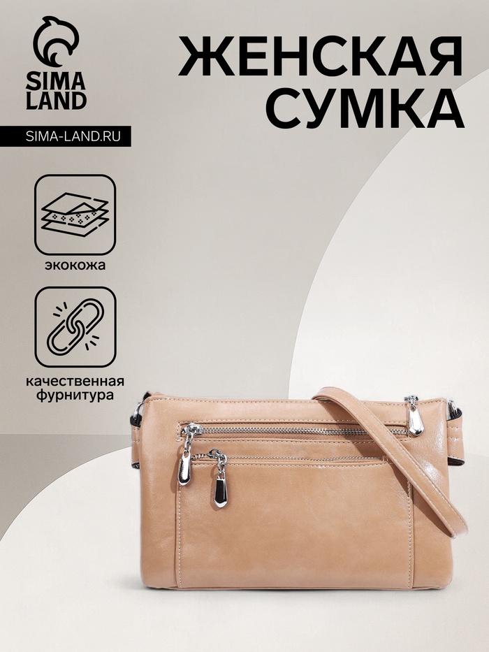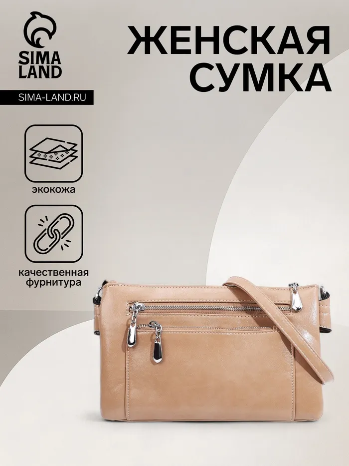 Сумка женская кросс-боди на молнии, 25×4×16 см, бежевая — Характеристики