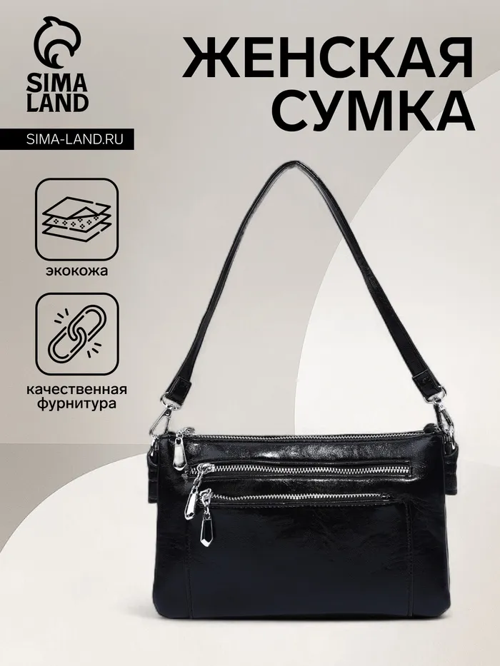 Сумка женская кросс-боди на молнии, 25×4×16 см, чёрная — Характеристики