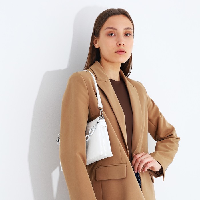 Сумка женская кросс-боди на молнии, 25×7×15 см, однотонная, белый — Характеристики