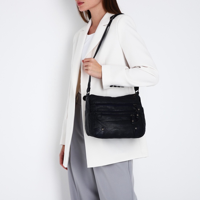 Сумка женская кросс-боди на молнии, 26×11×21 см, тёмно-синяя — Характеристики