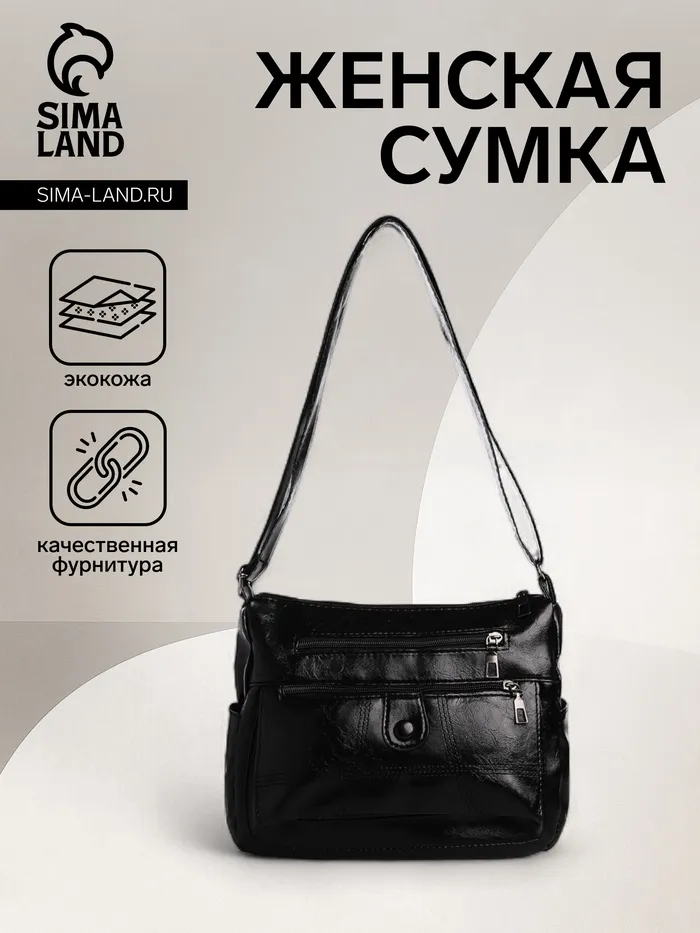 Сумка женская кросс-боди на молнии, 26×15×19 см, чёрная — Характеристики