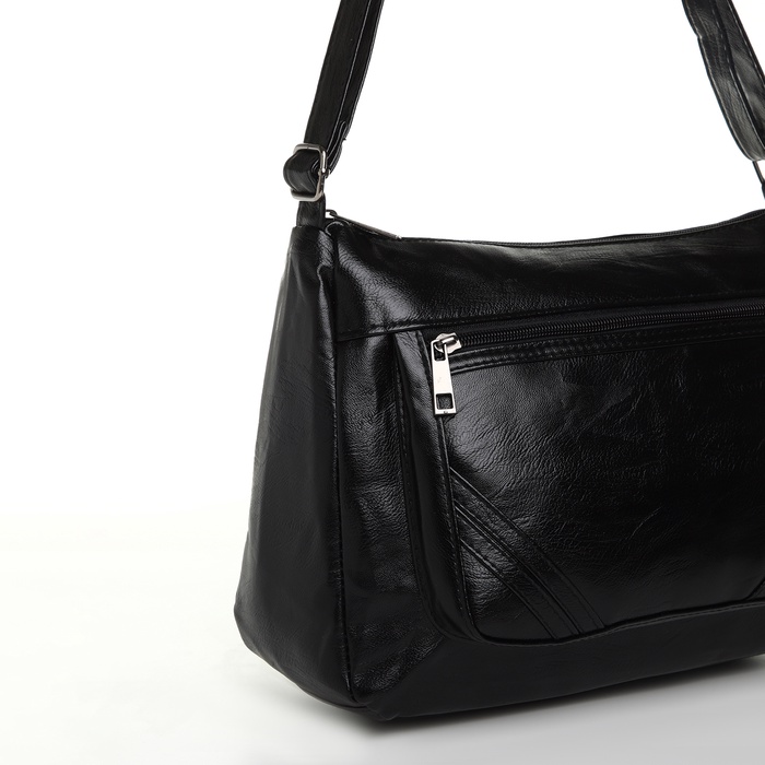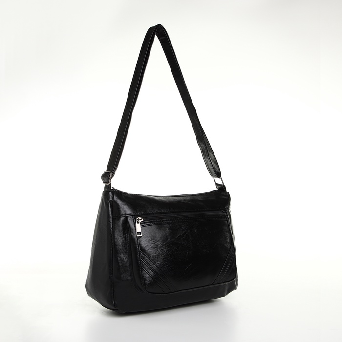 Сумка женская кросс-боди на молнии, 28×10×20 см, однотонная, чёрная — Характеристики