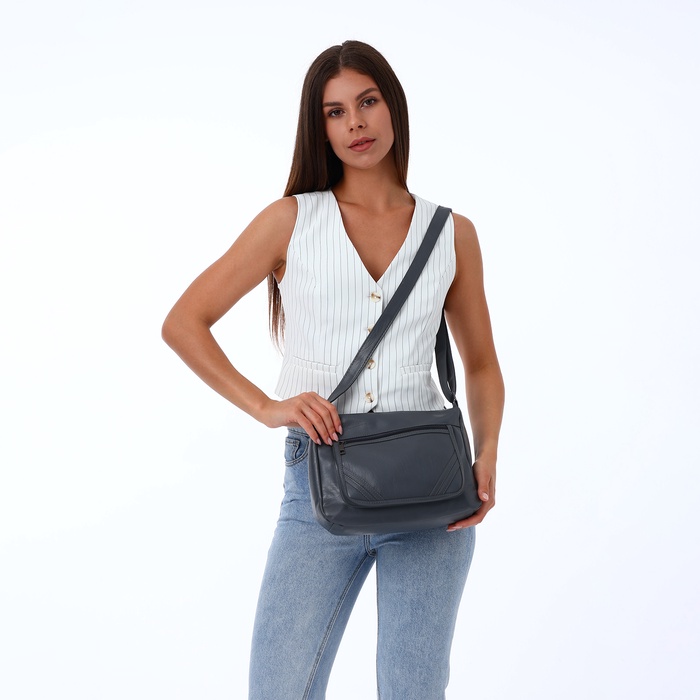 Сумка женская кросс-боди на молнии, 28×10×20 см, однотонная, серая — Характеристики