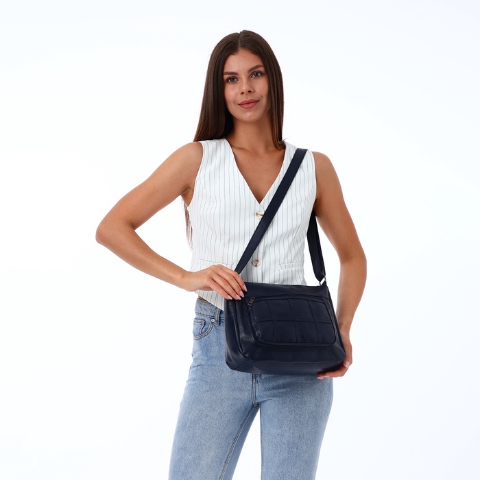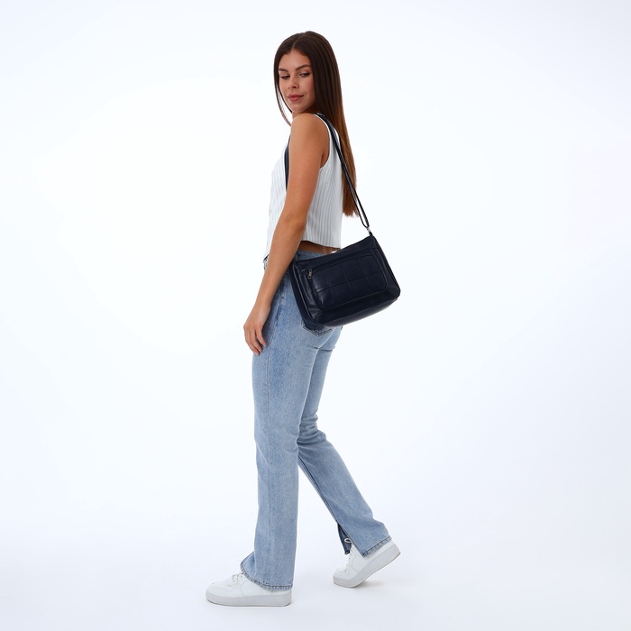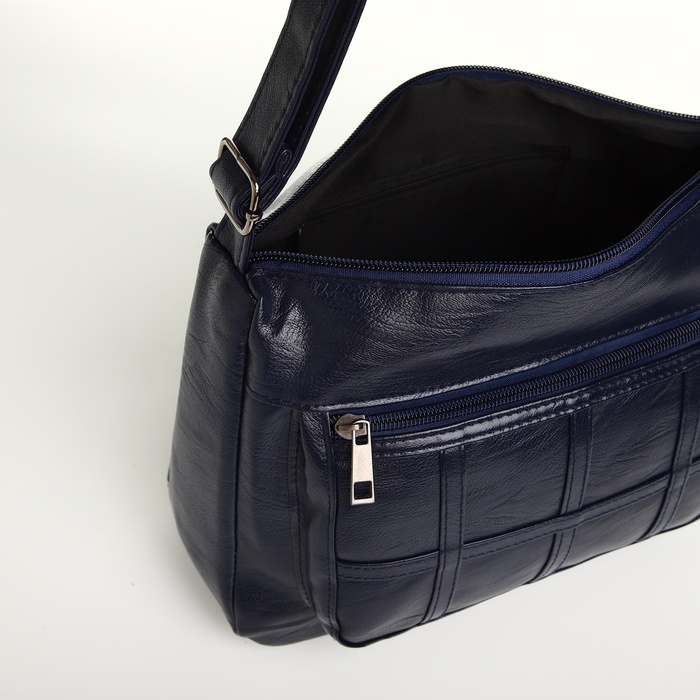 Сумка женская кросс-боди на молнии, 28×10×20 см, однотонная, тёмно-синяя — Характеристики