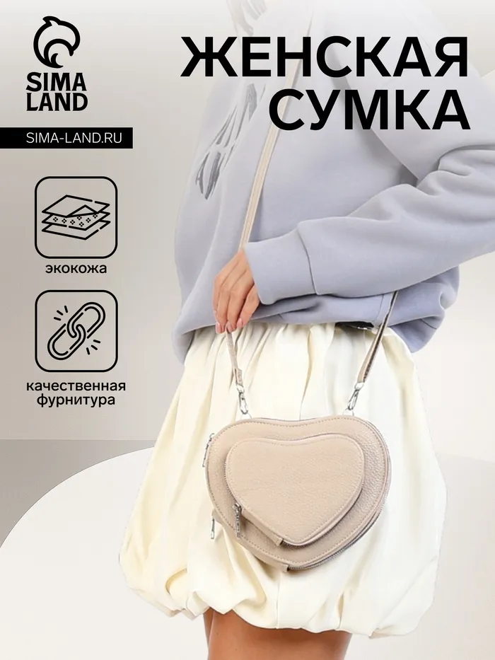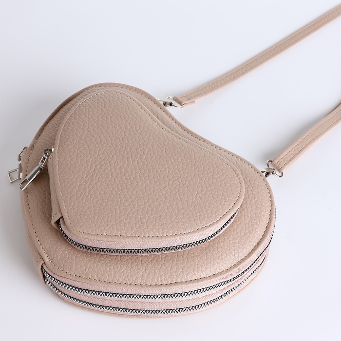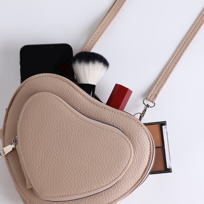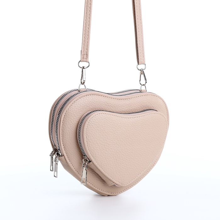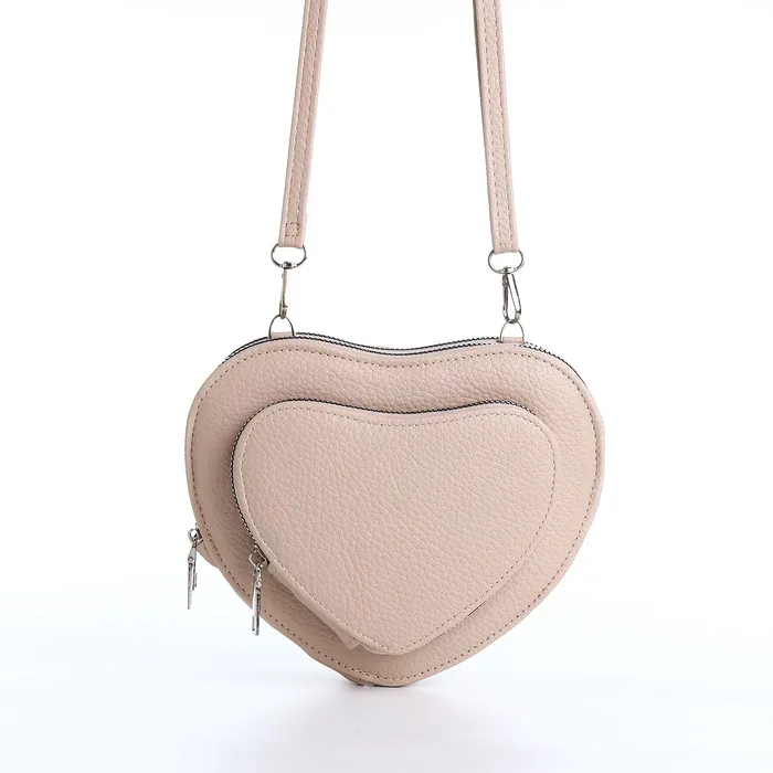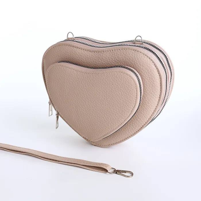 Сумка женская кросс-боди на молнии, в форме сердца, 20×5×16 см, бежевая — Характеристики