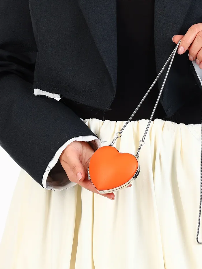 - Неповторимый дизайн: Форма сердца и яркий оранжевый цвет придают сумке уникальность, позволяя выделяться на любом мероприятии. Она станет вашим незаменимым спутником и подчеркнет вашу индивидуальность.