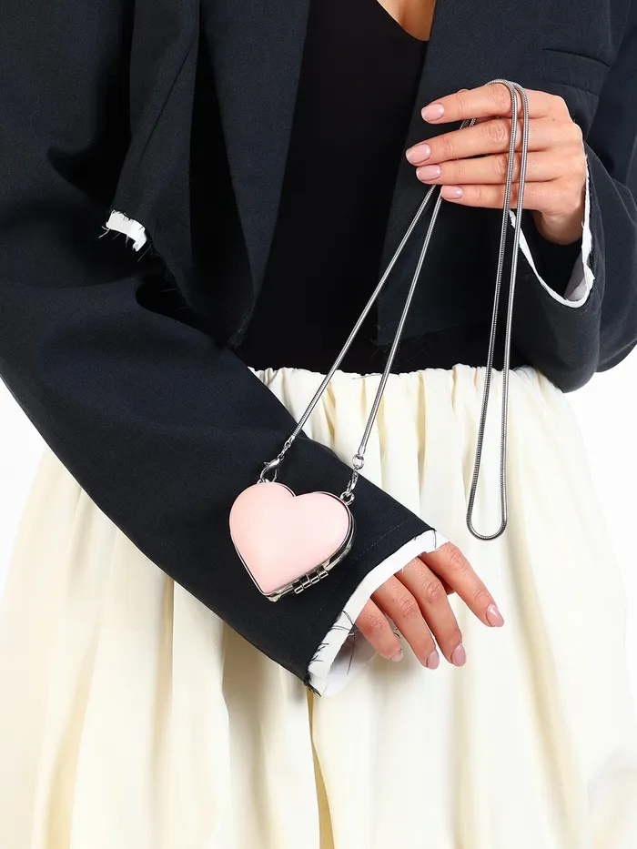 Элегантность и нежность в одном аксессуаре! Мини-сумочка в форме сердца на цепочке - это стильное решение для тех, кто ценит оригинальность. Розовый цвет и однотонный дизайн подойдут для особых случаев и дополнят ваш наряд.