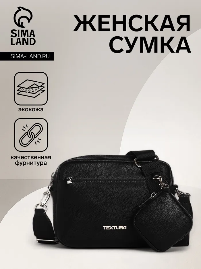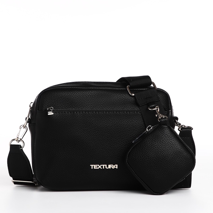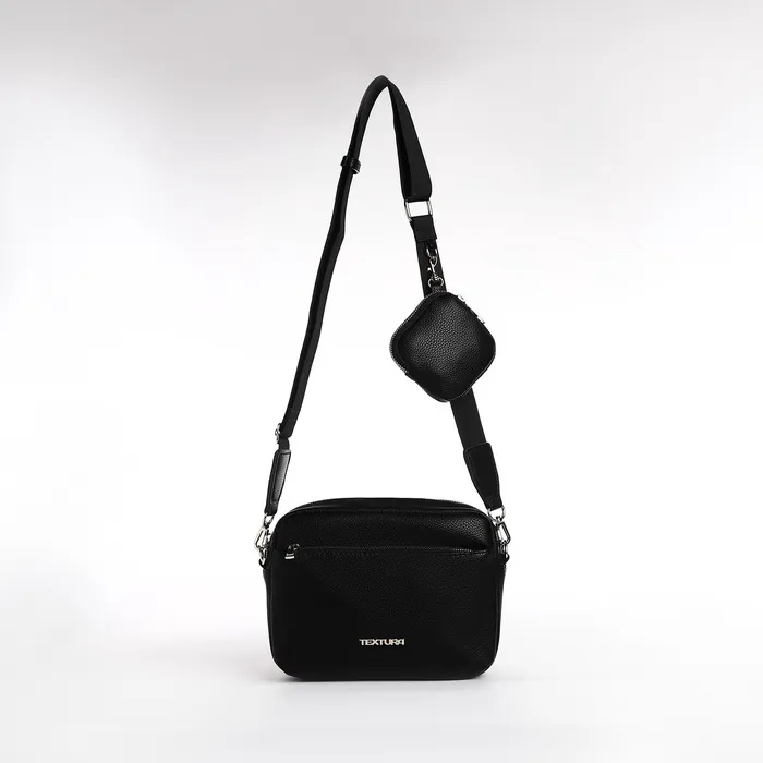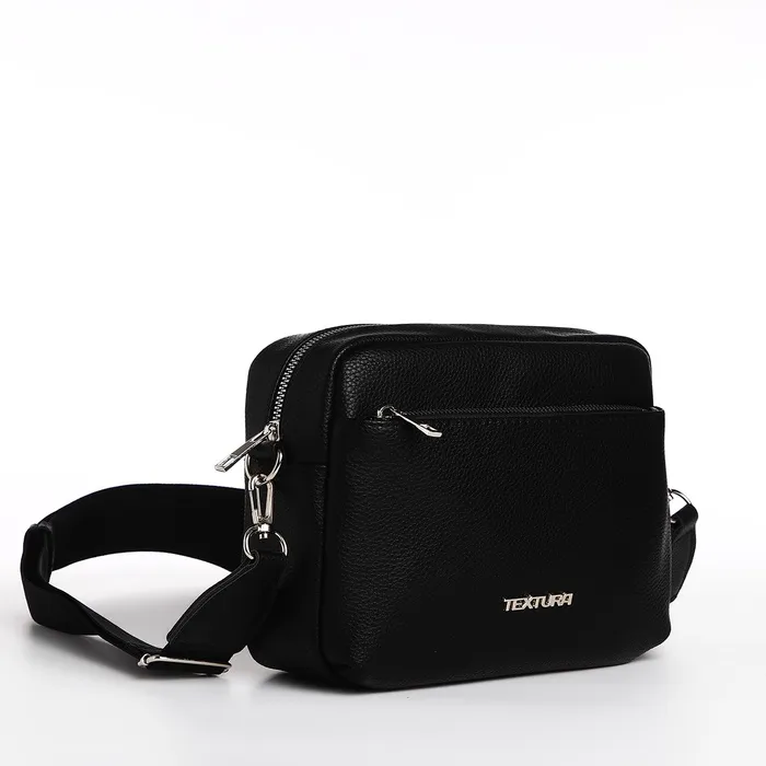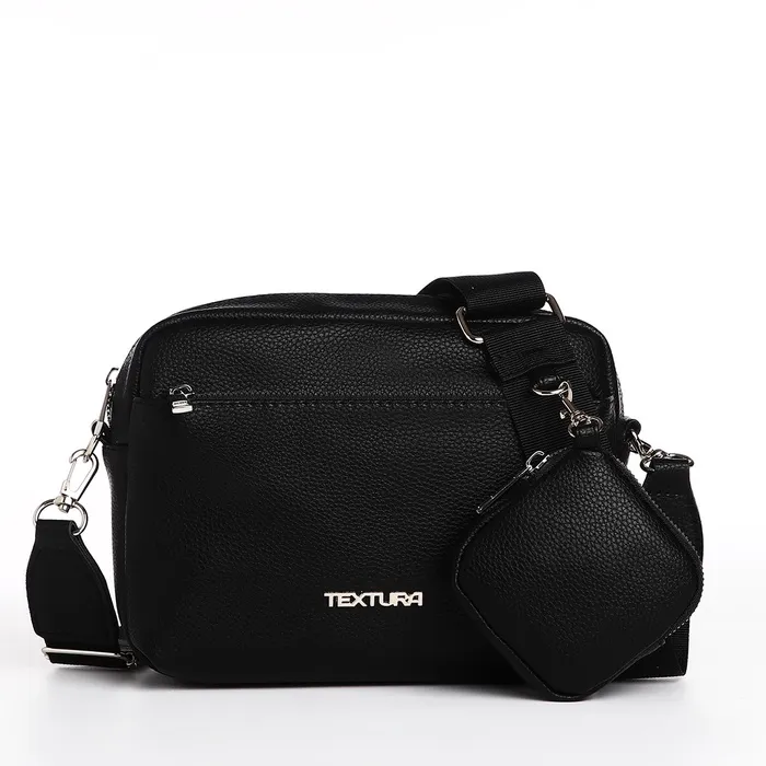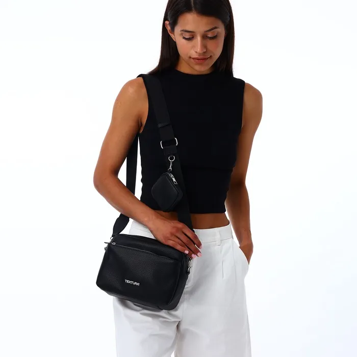 Сумка женская кросс-боди TEXTURA на молнии, 16×7×17 см, чёрная — Характеристики
