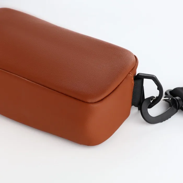 Этот аксессуар, выполненный из искусственной кожи, сочетает в себе стиль и практичность в компактных размерах.