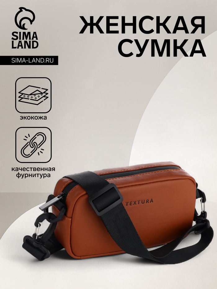 Сумка женская кросс-боди TEXTURA на молнии, 19×6×10.5 см, рыжая — Характеристики