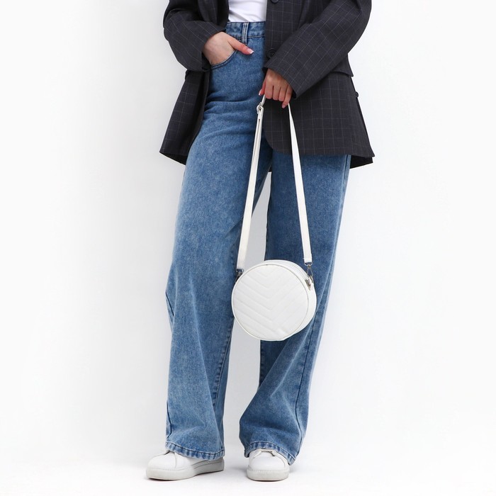 Сумка женская круглая из искусственной кожи, 18×18 см, белая