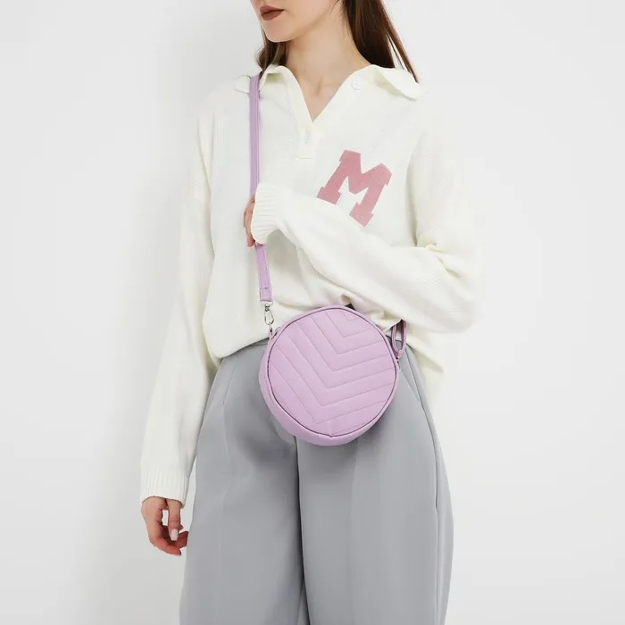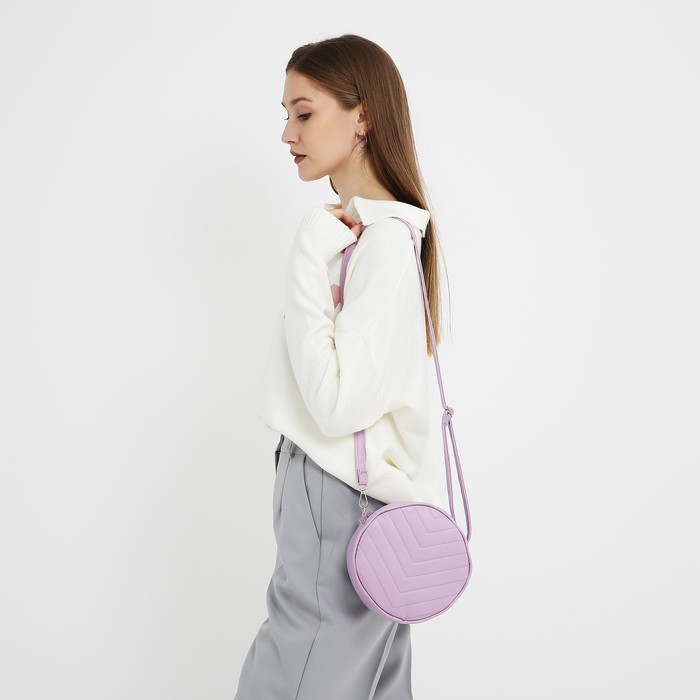 Сумка женская круглая из искусственной кожи, 18×18 см, сиреневая — Характеристики
