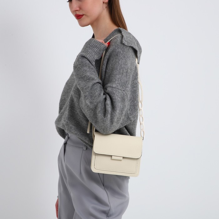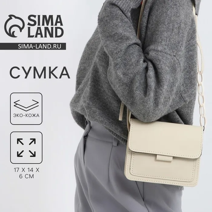 Сумка женская-мессенджер, 17×14×6 см, бежевая — Характеристики