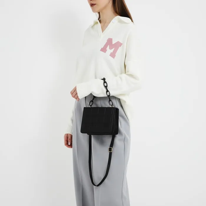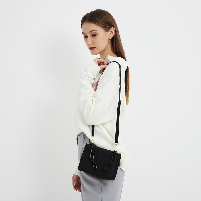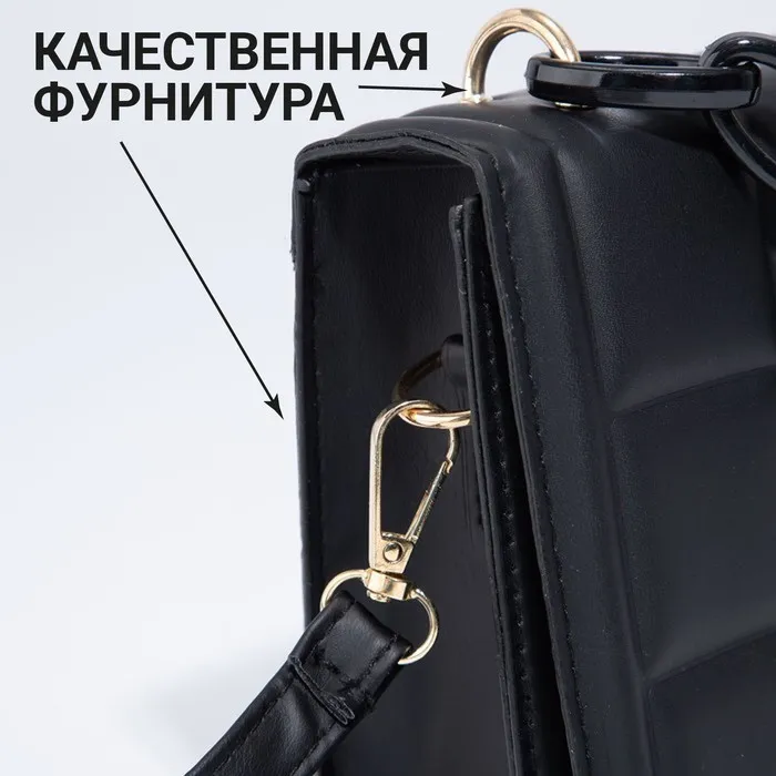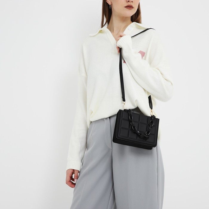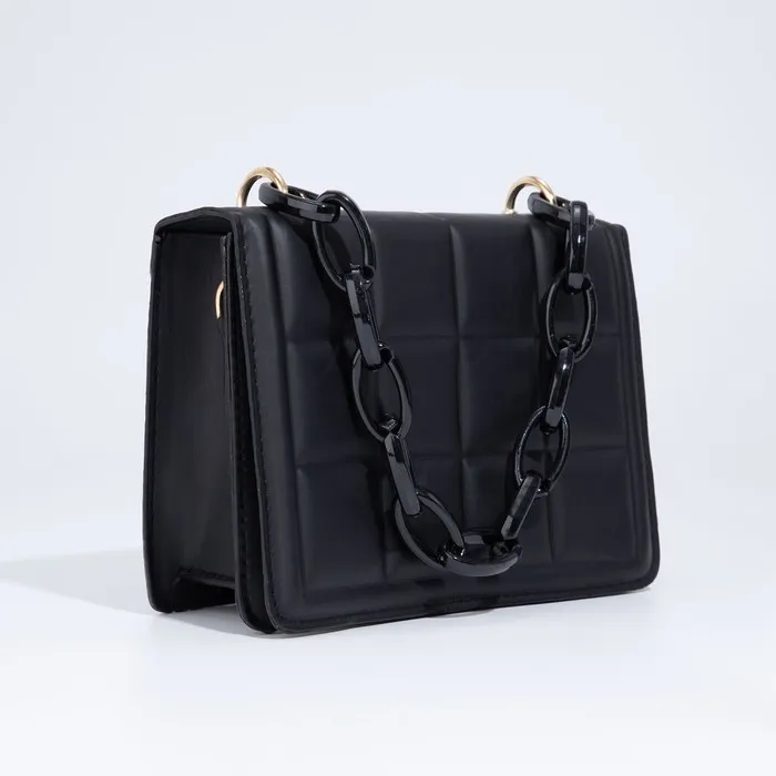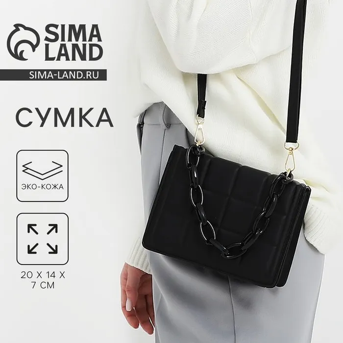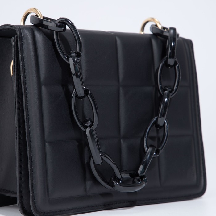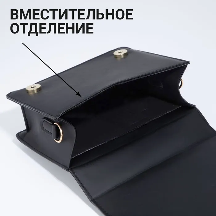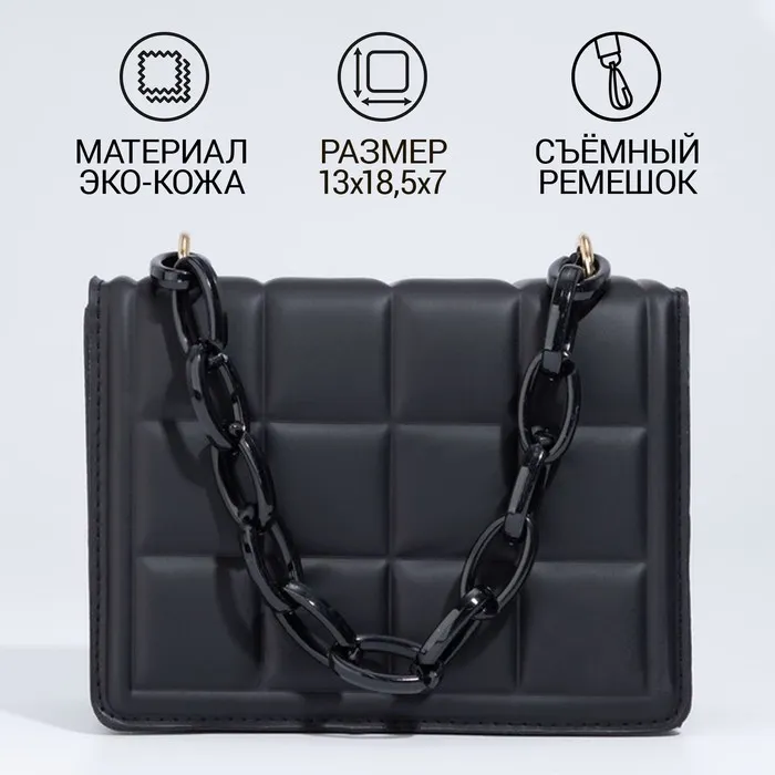 Сумка женская мессенджер из искусственной кожи с цепью, 14×20 см, чёрная — Характеристики
