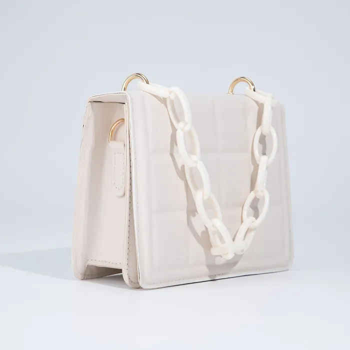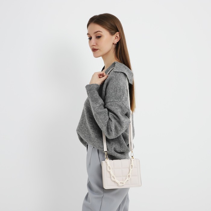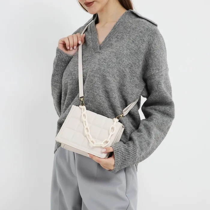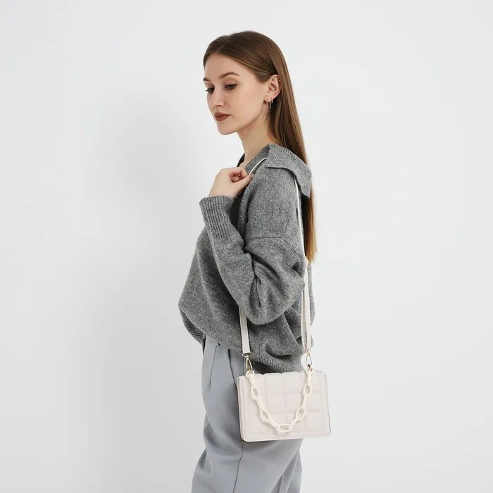 Сумка женская мессенджер из искусственной кожи с цепью, 14×20 см, молочная — Характеристики