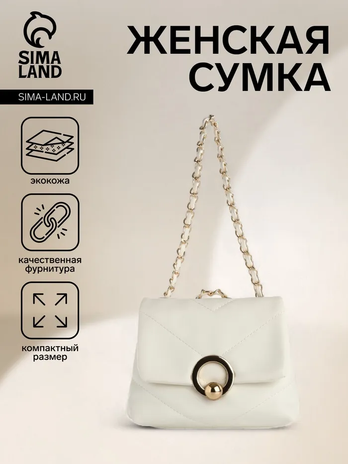 Сумка женская мессенджер на клапане, 17.5×6×14.5 см, белая — Характеристики