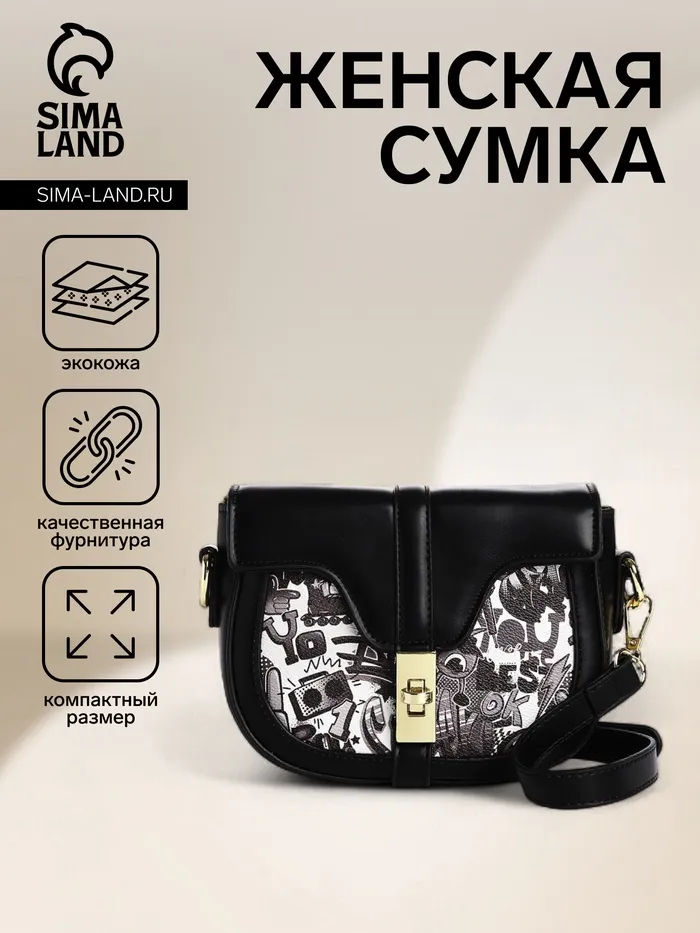 Сумка женская мессенджер на клапане, 18×6×16 см, чёрная — Характеристики