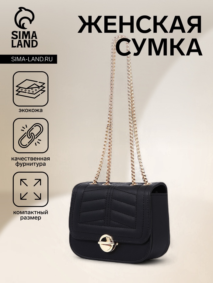 Сумка женская мессенджер на клапане, 18×7×13 см, на цепочке, чёрная — Характеристики