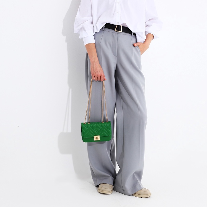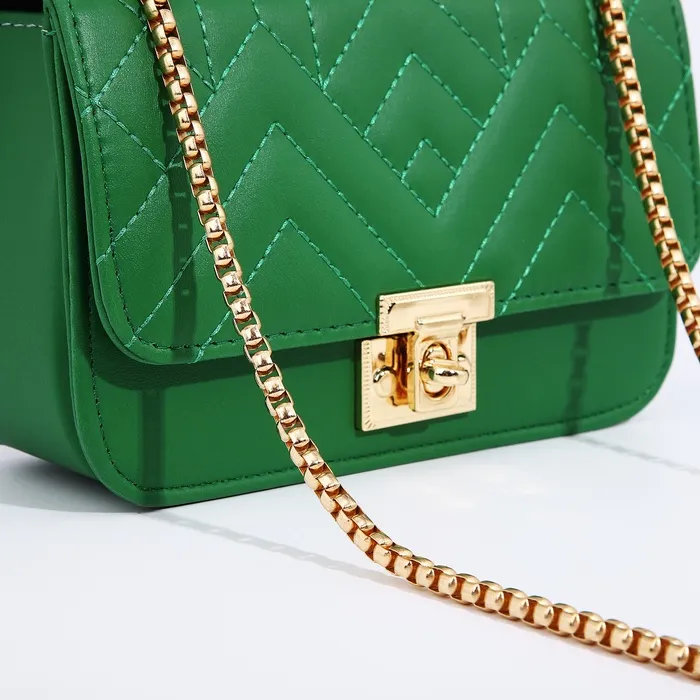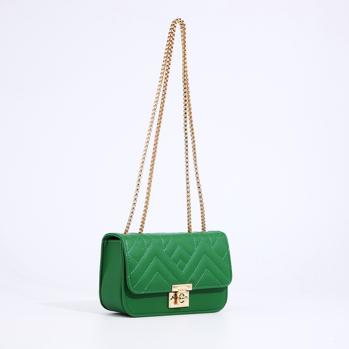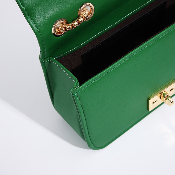 Сумка женская мессенджер на клапане, 18×7×13 см, со стёжкой, зелёная — Характеристики