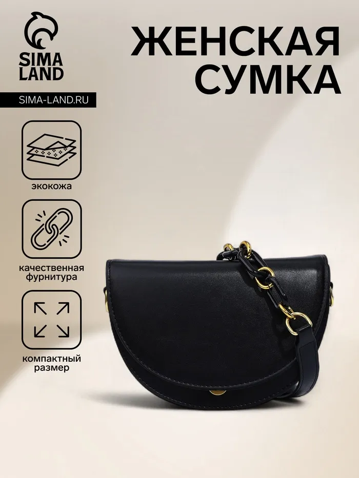 Сумка женская мессенджер на клапане, 20×5×13.5 см, чёрная — Характеристики
