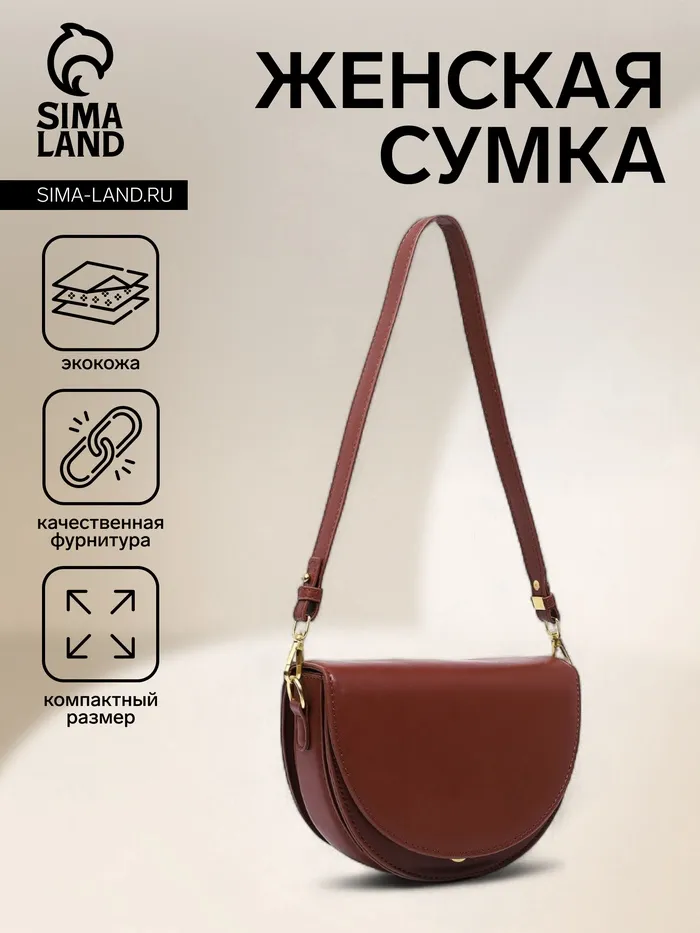 Сумка женская мессенджер на клапане, 20×5×13.5 см, коричневая — Характеристики