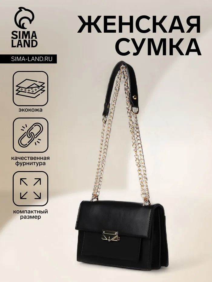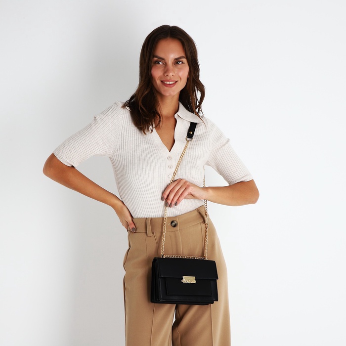 Сумка женская мессенджер на клапане, 20×9×13 см, чёрная — Характеристики