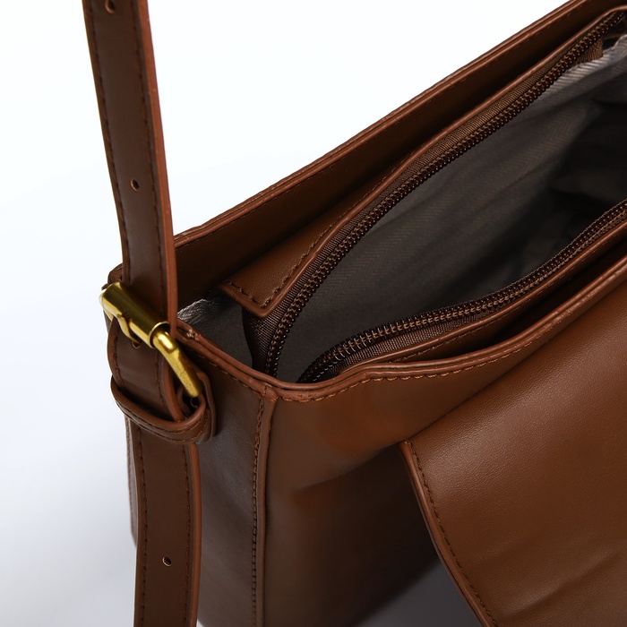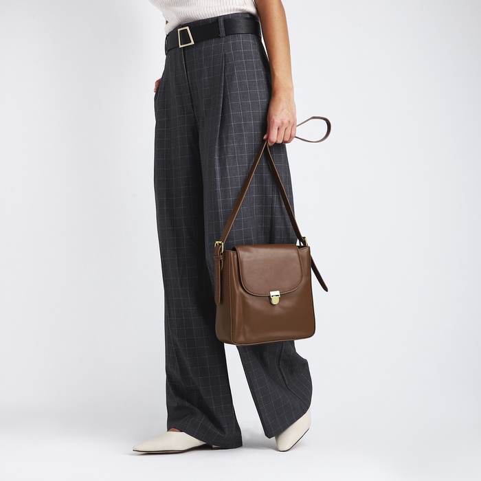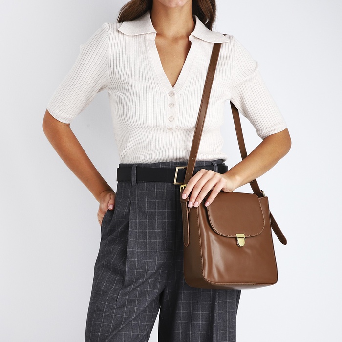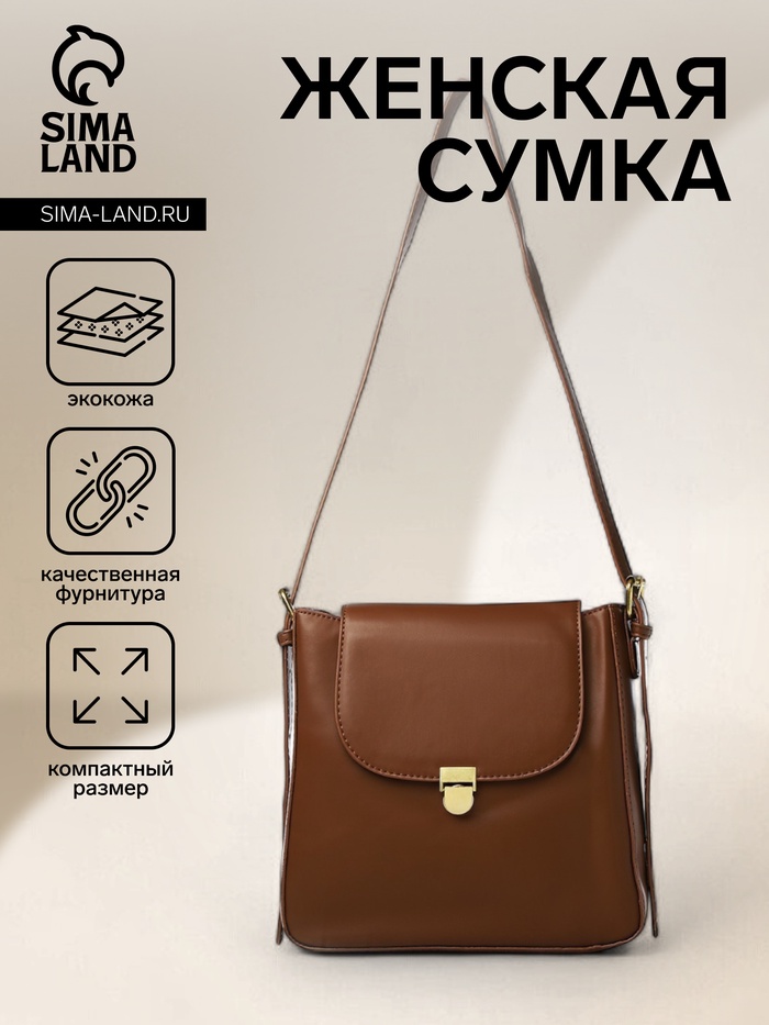 Сумка женская мессенджер на клапане, 22×7×21 см, коричневая — Характеристики