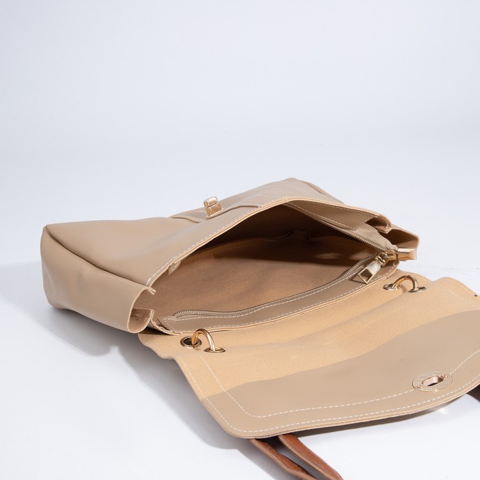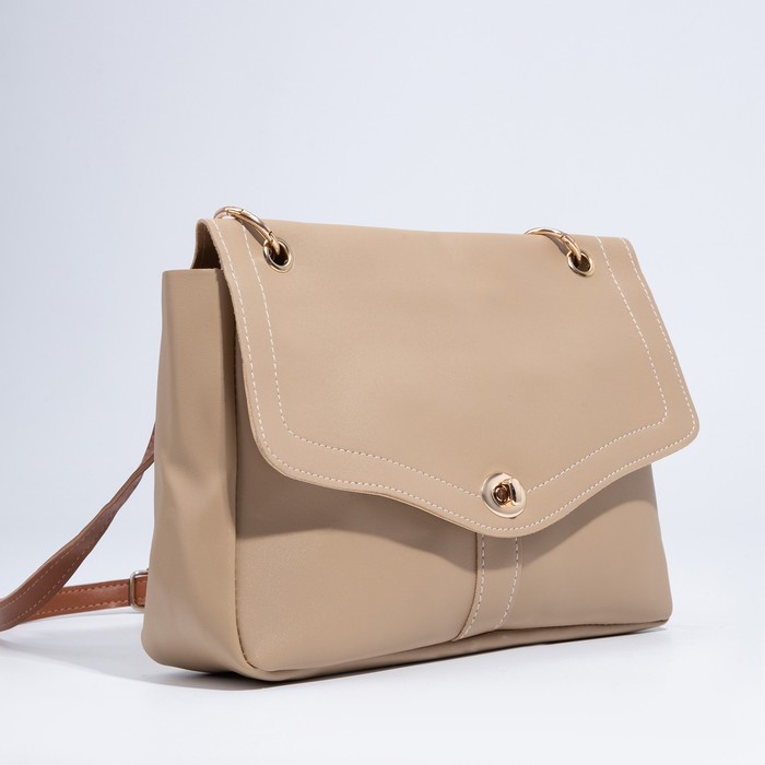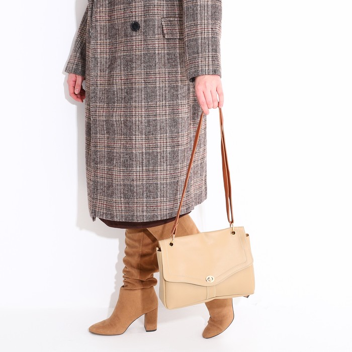 Сумка женская мессенджер на клапане, 26×7×18 см, бежевая — Характеристики