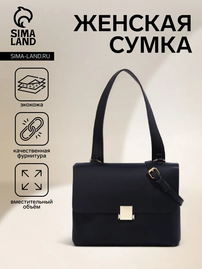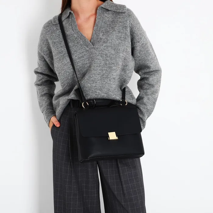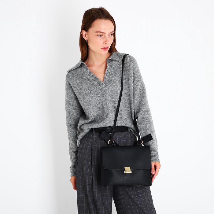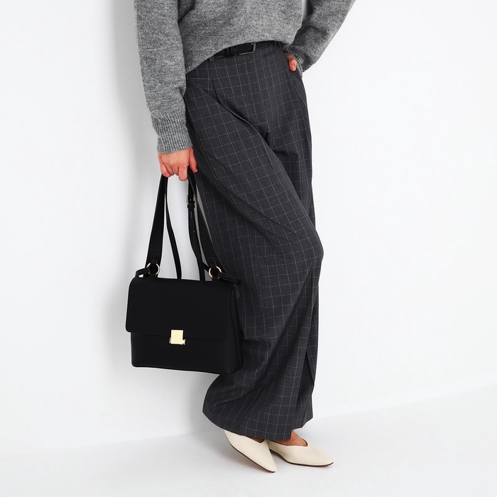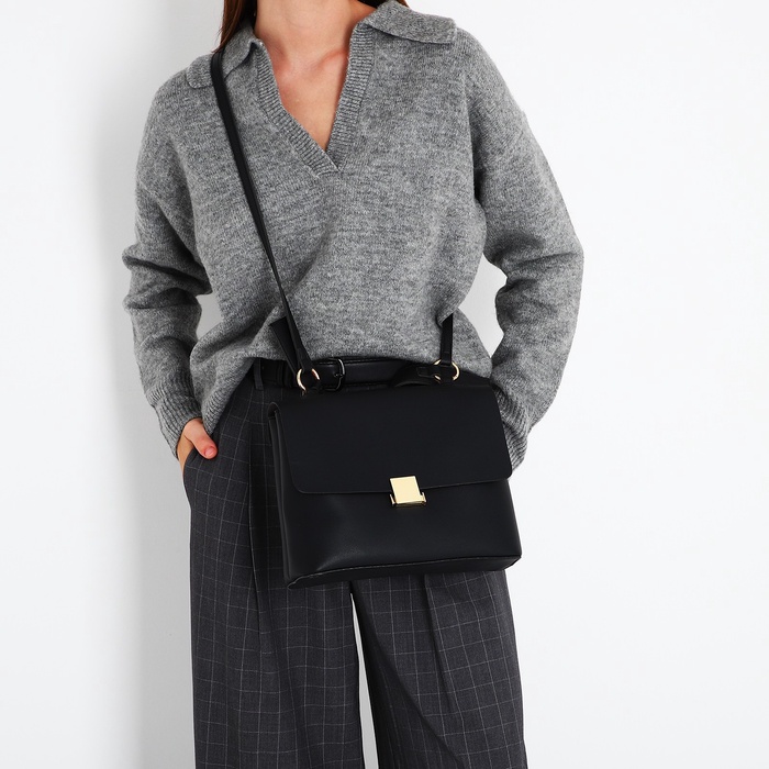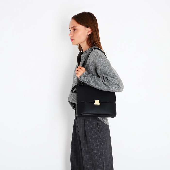 Сумка женская мессенджер на клапане, 27×9.5×20 см, чёрная — Характеристики