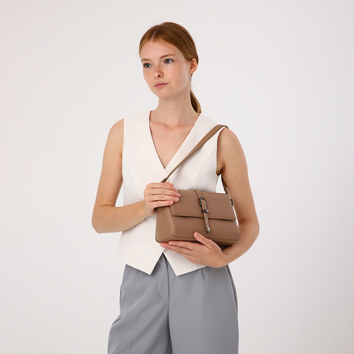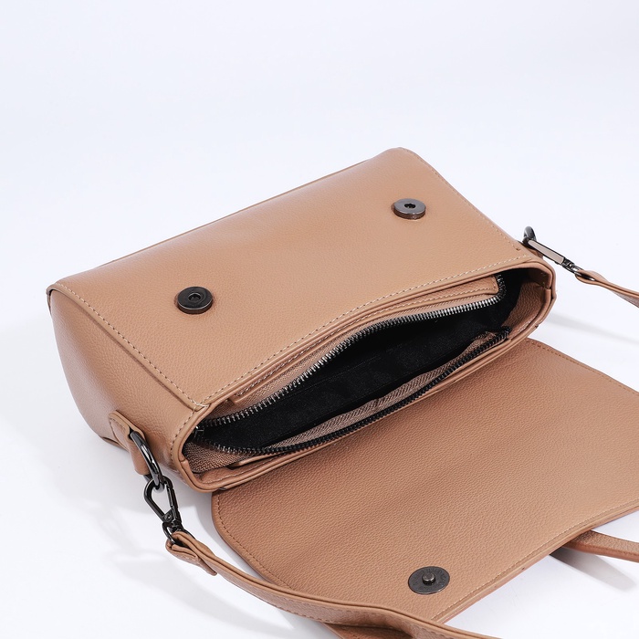 Сумка женская мессенджер на магнитах, 24×10×15 см, бежевая — Характеристики