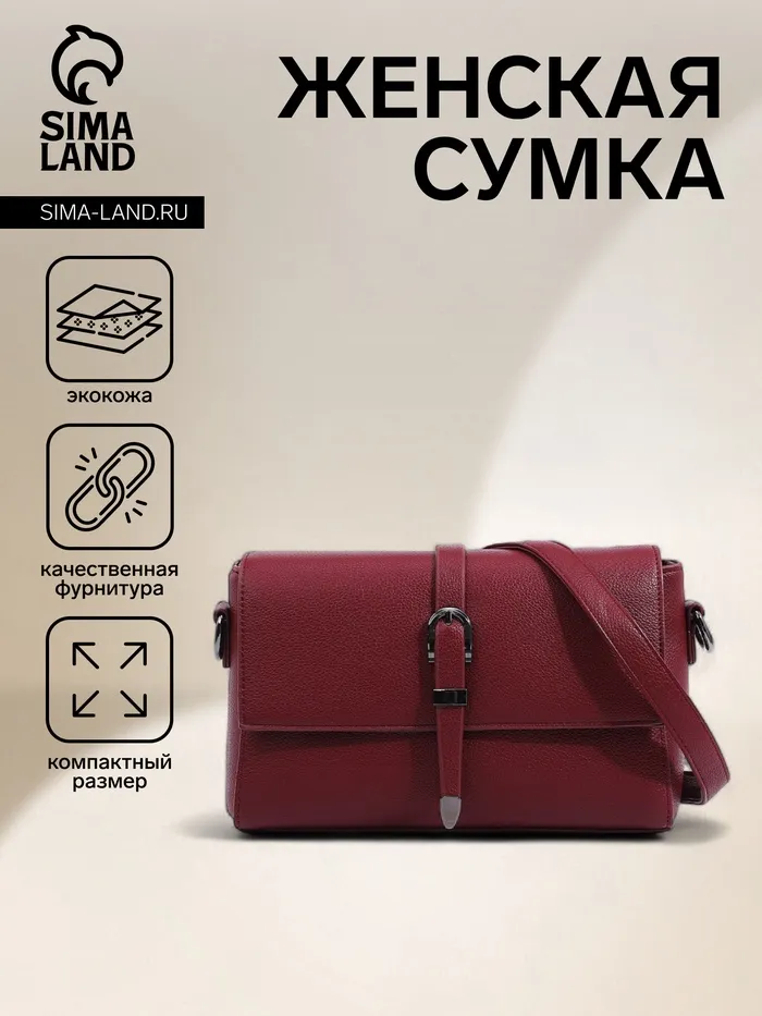 Сумка женская мессенджер на магнитах, 24×10×15 см, бордовая — Характеристики
