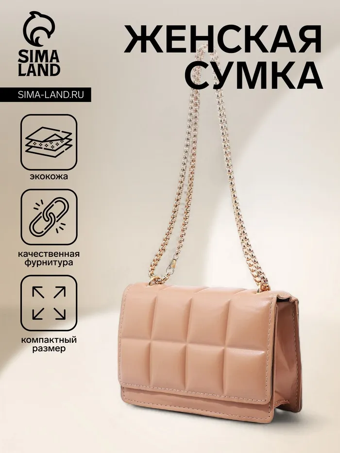 Сумка женская мессенджер на магните, 20×6×12 см, бежевая — Характеристики