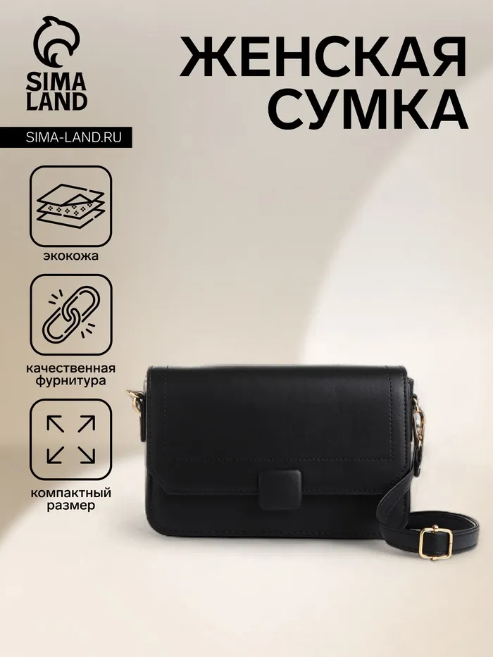 Сумка женская мессенджер на магните, 20×7×12 см, чёрная — Характеристики