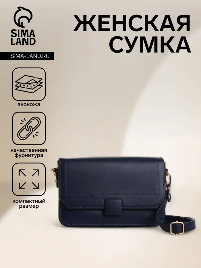 Сумка женская мессенджер на магните, 20×7×12 см, синяя — Характеристики