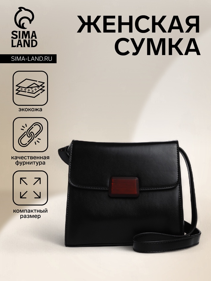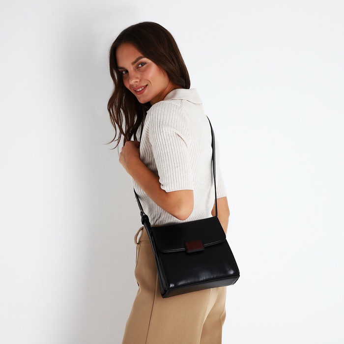 Сумка женская мессенджер на магните, 21×7×18 см, чёрная — Характеристики