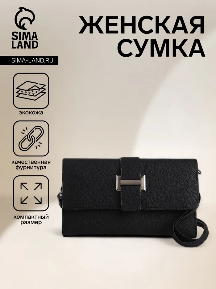 Сумка женская мессенджер на магните, 22.5×3×13.5 см, чёрная — Характеристики