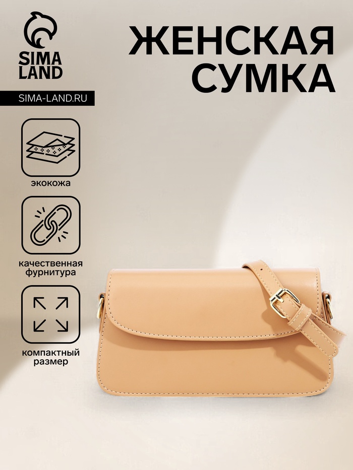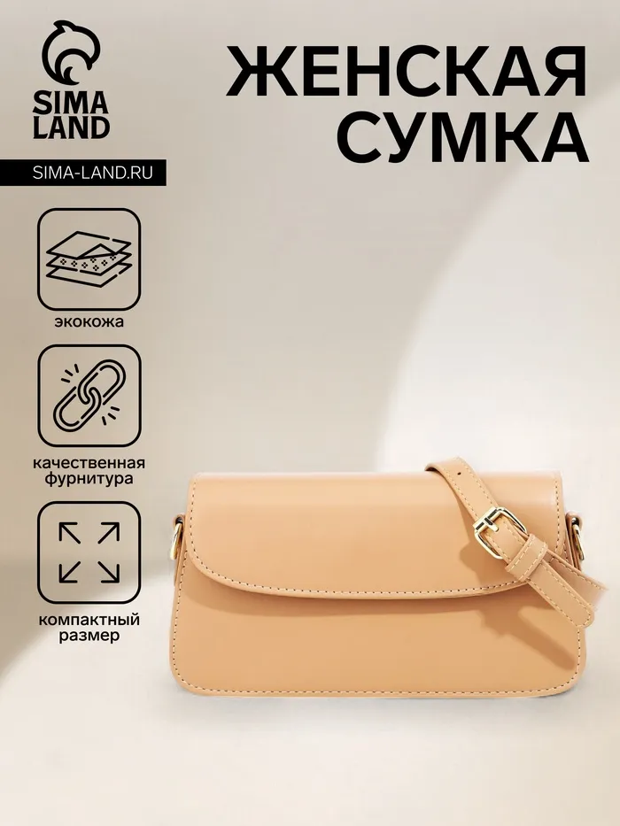 Сумка женская мессенджер на магните, 22×6×12 см, бежевая — Характеристики