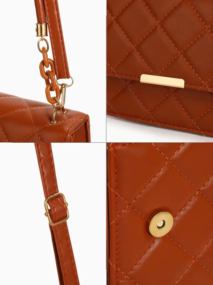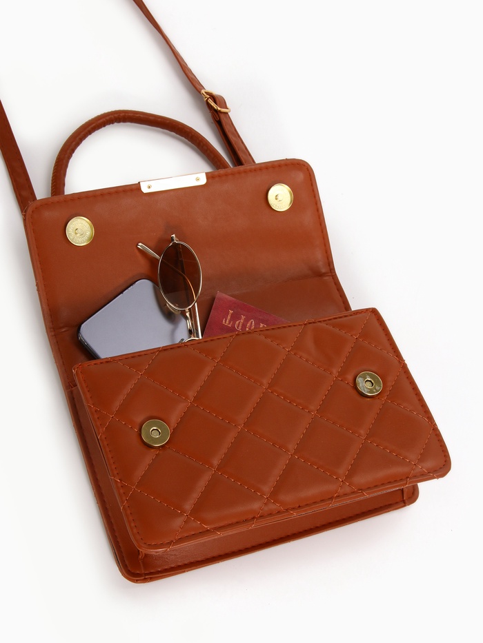 Сумка женская мессенджер на магните, 22×6×14 см, со стёжкой, коричневая — Характеристики