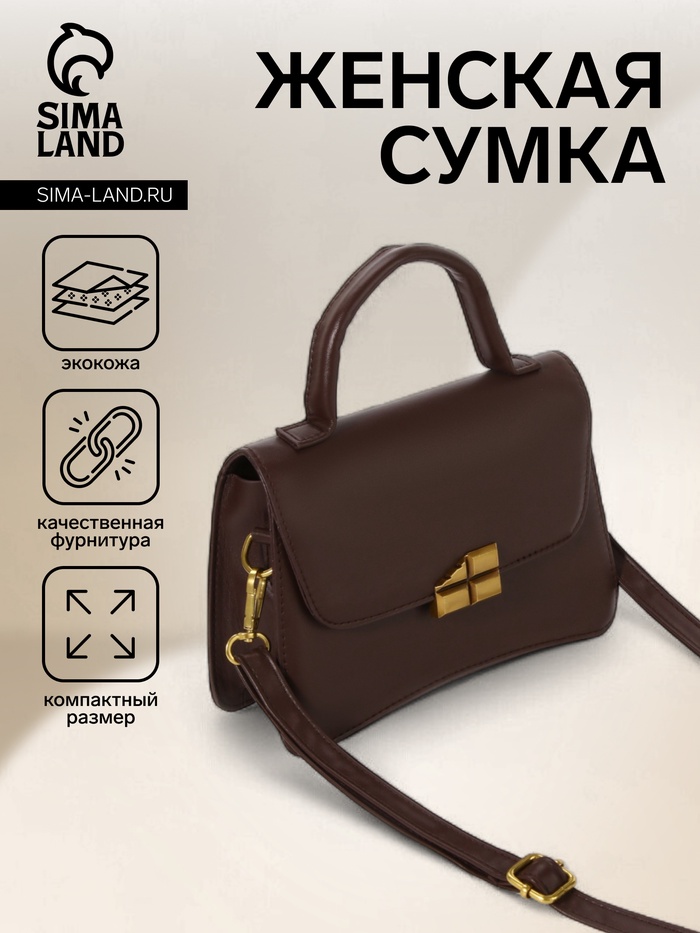 Сумка женская мессенджер на магните, 22×7×14 см, коричневая — Характеристики