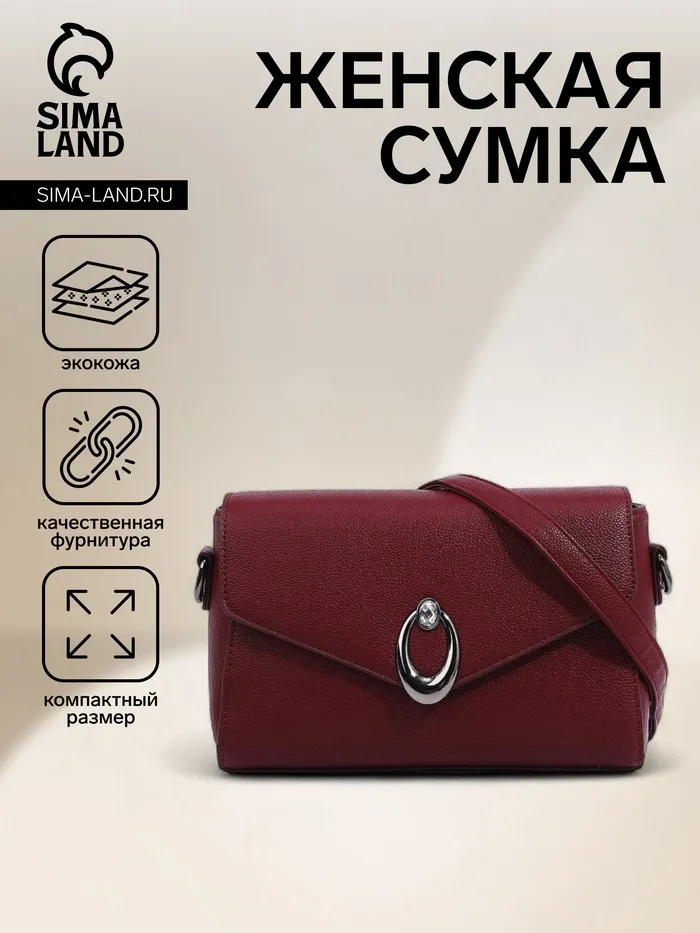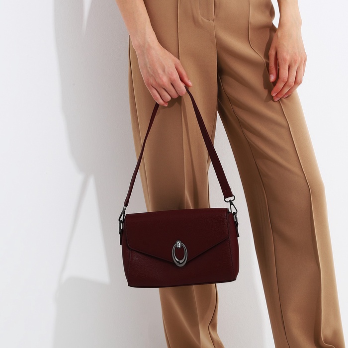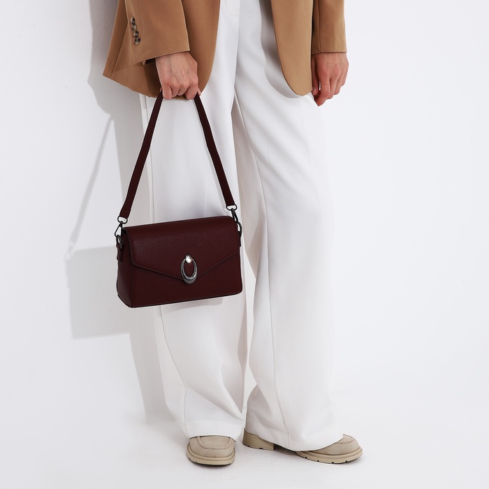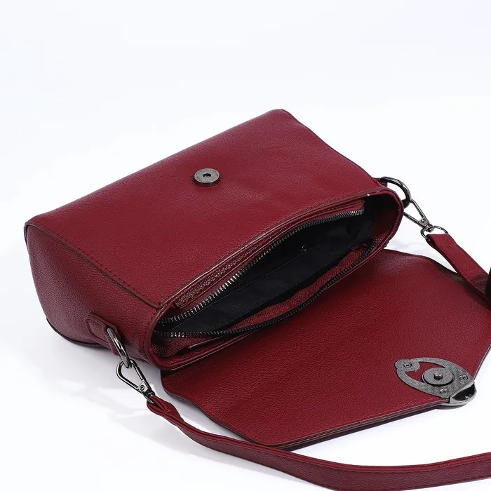 Сумка женская мессенджер на магните, 24×10×15 см, однотонная, бордовая — Характеристики