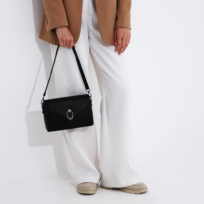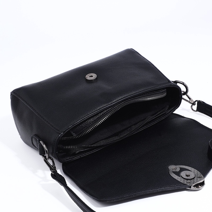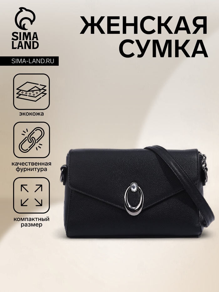 Сумка женская мессенджер на магните, 24×10×15 см, однотонная, чёрная — Характеристики