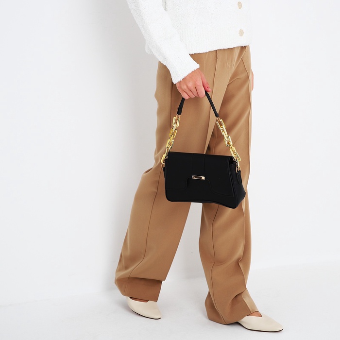 Сумка женская мессенджер на магните, 25×6×14 см, чёрный